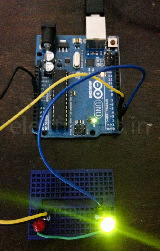 serial port, which the Arduino reads, and flashes some lights.