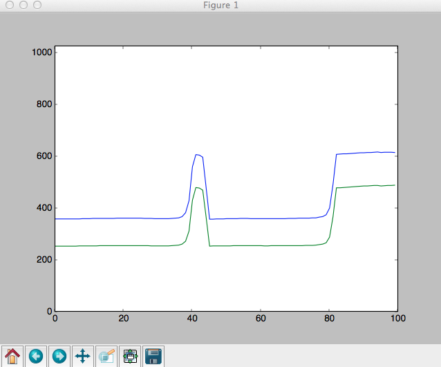 On the computer side, I need to read these values, and plot them as a function of time. I am using Python and the Matplotlib library for this. I wanted to display this as a scrolling graph that moves to the right as data keeps coming in. For that, I am using the Python deque class to keep and update a fixed number of data points for each time frame.
